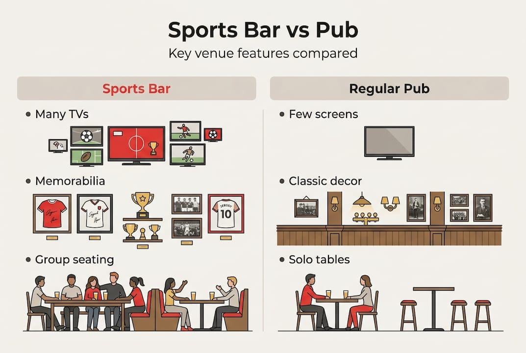 The gap between a sports bar and a regular pub is wider than most people realize. A pub is built for general socializing. A sports bar is built for a specific shared activity.
